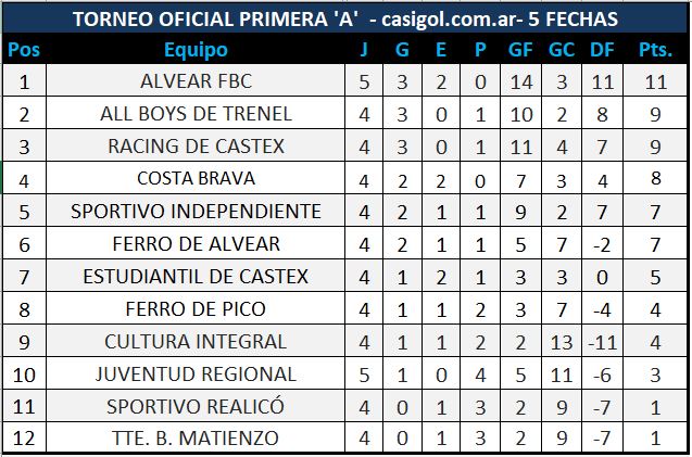 ALVEAR GANÓ EN EL ADELANTADO Y HASTA QUE SE COMPLETE LA FECHA ES ÚNICO LÍDER