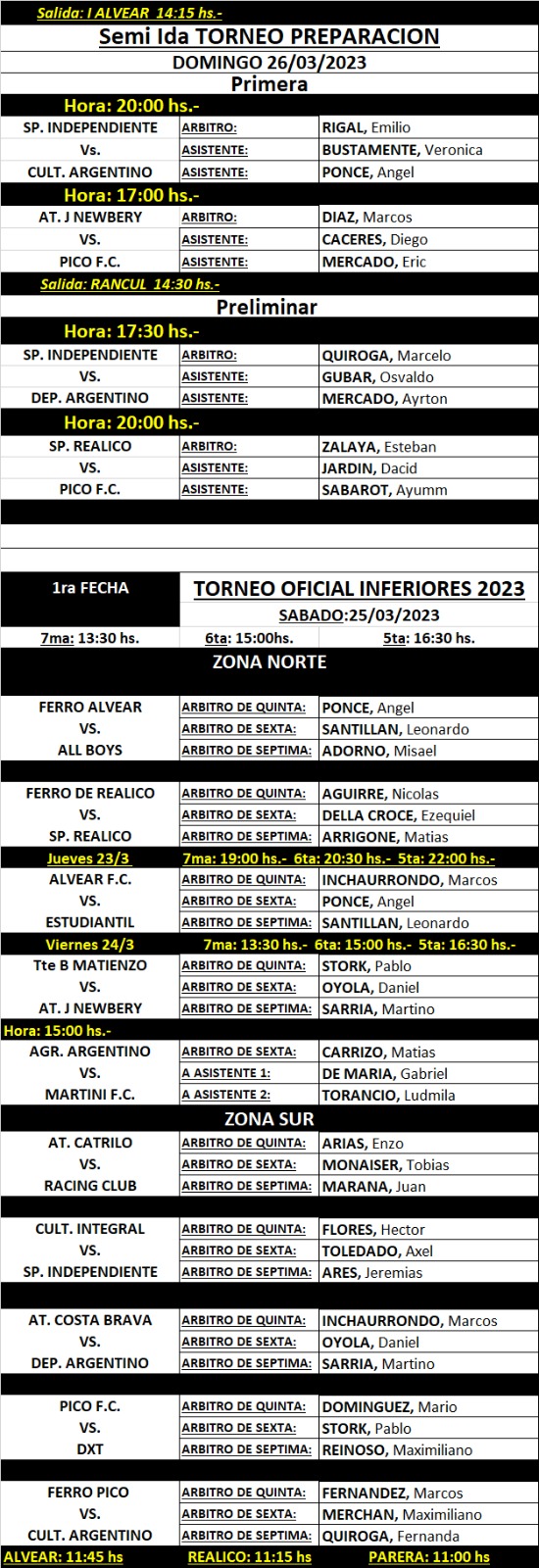 Liga Pampeana difundión los árbitros que impartirán justicia en las semifinales de ida del torneo prepración, tanto en primera como en categoría preliminar y también en divisiones inferiores que comenzaron para las categorías séptima, sexta y quinta.