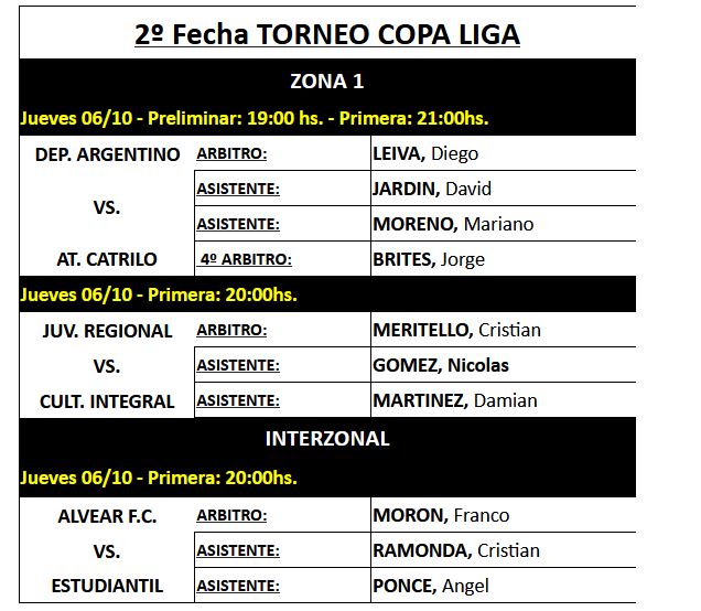 ÁRBITROS PARA LA JORNADA DE LOS ENCUENTROS ADELANTADOS DE COPA LIGA PAMPEANA