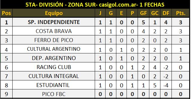 Se disputó la primera fecha del Liga Pampeana de fútbol en divisiones inferiores, para las categorías sexta y quinta división. Recordamos que en séptima se dejó abierta la inscripción hasta ayer viernes, s traves de la cuál los clubes interesados podían confirmar su participación.