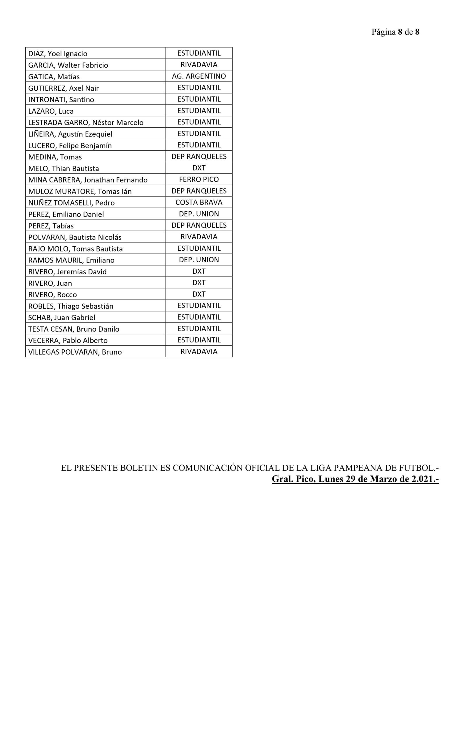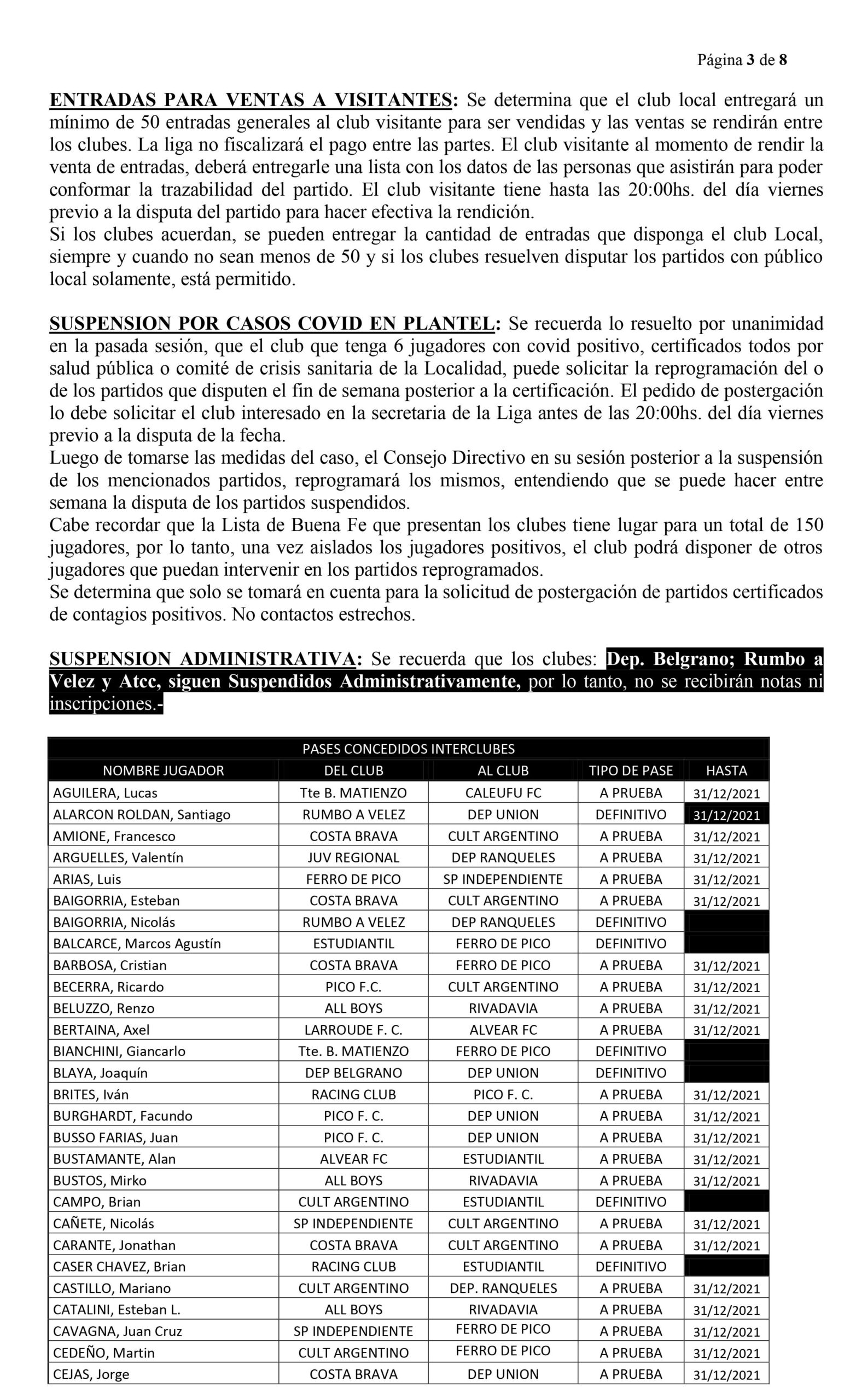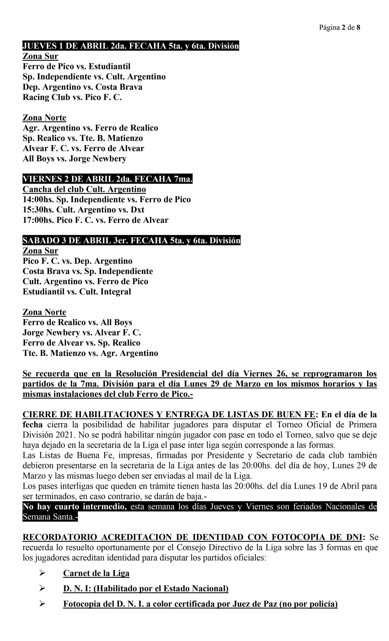 La liga Pampeana publicó el boletín oficial, con la programación de partidos, los horarios, la venta de entradas a equipos visitantes, suspensiones de partidos en caso de covid, pases concedidos y listas de buena fe. El siguiente es el boletín oficial: