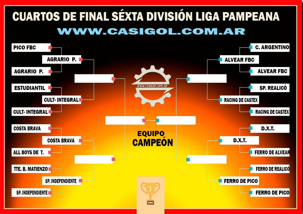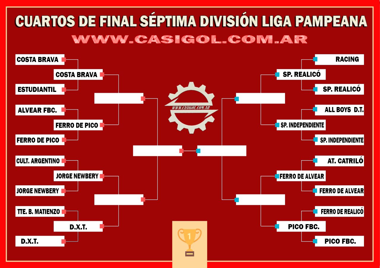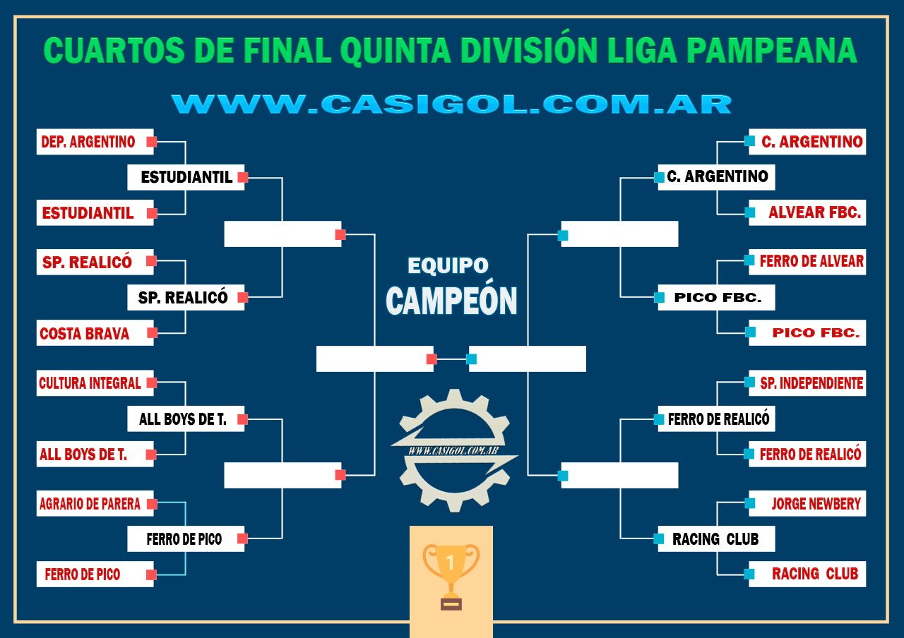 Son 24 los equipos que clasificaron para los cuartos de final en las tres categorías y el sorteo dio que los partidos de ida se disputarán en canchas de Cultural Argentino, Estudiantil de Castex, Racing de Castex, Agrario de Parera, Ferro de Alvear, Sportivo Independiente, Jorge Newbery de Rancul  y Ferro de Pico.  Así quedaron las localías para el primer partido.