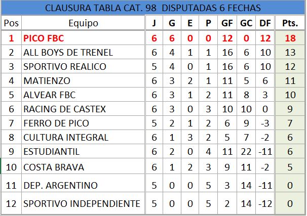 Se disputó una nueva fecha del torneo clausura en categoría 1998 y estos son los resultados, la tabla de posiciones y la próxima fecha.