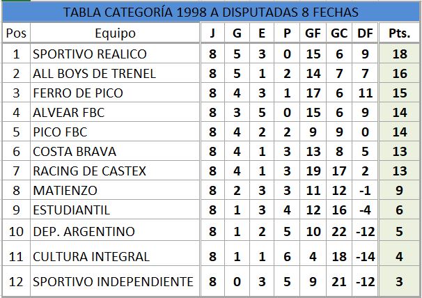 Se disputó una nueva fecha del torneo apertura de Liga Pampeana para categoría 1998 y Sportivo Realicó ganón en la villas Sportiva y continúa como único líder.