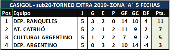 TABLA DE POSICIONES CATEGORÍA SUB 20