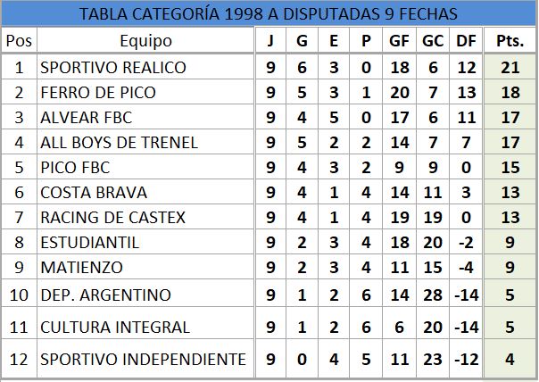 Se disputó una nueva fecha de la categoría 1998 y el que manda es Sportivo Realicó,