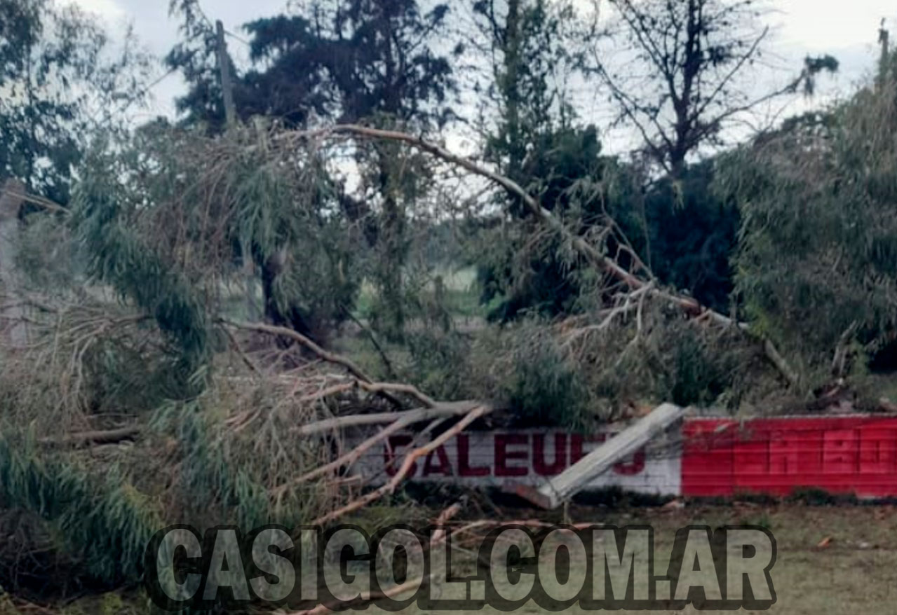 La tormenta de fuertes vientos que anoche azotó toda nuestra zona, ocasionó importantes destrozos en el estadio de Caleufú F.C. ...