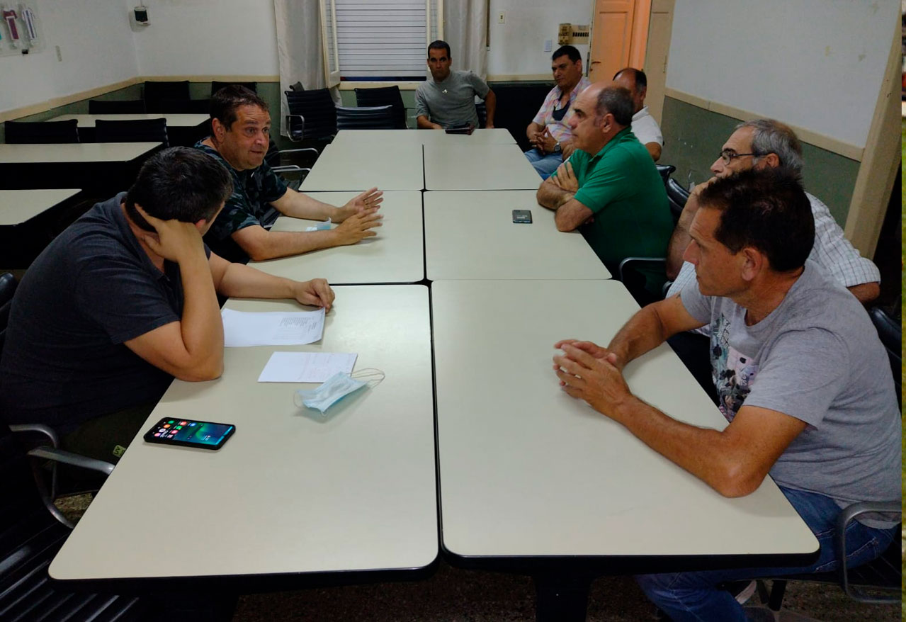 El subsecretario de Deportes del Ministerio de Desarrollo Social, Ceferino Almudévar, y representantes de las ligas Pampeana y Cultural ...