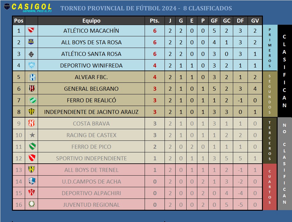 TABLA ZONA "B" SI SANTAROSA GANA LA PROTESTA