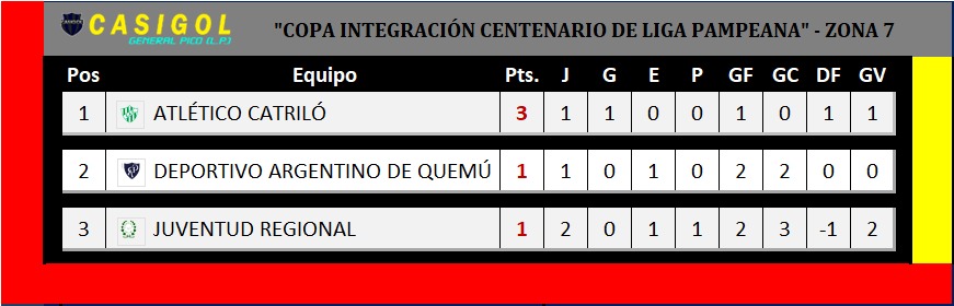 Zona 7:  aquí se disputaron dos encuentros,  y todo se define en la última cuando juegen en el "Meridiano V" Atlético Catriló y Deportivo Argentino, donde uno de los dos avanzará a la siguiente fase, teniendo en cuenta que Juventud Regional ya está eliminado de la competencia.