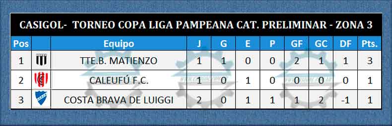 COPA LIGA PAMPEANA: COSTA GANÓ EN BARÓN Y ES LIDER EN LA ZONA 5