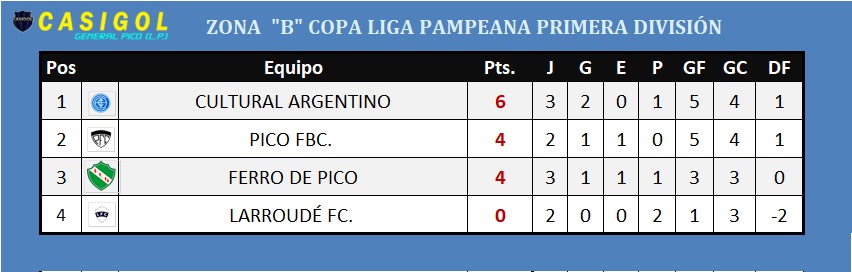 En la tarde noche de hoy comenzó la tercera fecha del torneo Copa Liga Pampeana, con el encuentro de la zona "B" entre Cultural Argentino y Ferro de Pico. En un partido en el cual hubo un corte de luz en la previa al inicio y durante el entretiempo, se jugó con intensidad, donde en la primera parte los de Talavera, buscaron el desnivel, intentando por afuera, básicamente por el sector derecho por donde tuvo las mejores aproximaciones. En Cultural se fue expulsado el lateral izquierdo Sepúlveda y Ferro emparejó las acciones, pero también se quedó con diez tras la expulsión de su arquero Maldonado. Promediando la segunda mitad llegó la ventaja para Cultural Argentino, gol marcado por Matías Montero. La visita se quedó con diez tras la expulsión de su número dos Wallemacq y con ese hombre demás Cultural Argentino se encaminó al triunfo que lo deja como líder de la zona "B" hasta que juegue mañana Pico FBC.