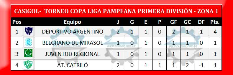 En la tarde noche de hoy arrancó la segunda fecha del torneo Copa Liga Pampeana. Por la zona uno se enfrentaron en el "Carlos Sierra" el campeón de la primera "B" recientemente ascendido a la máxima categoría del fútbol de Liga Pampeana, Deportivo Argentino y At. Catriló.