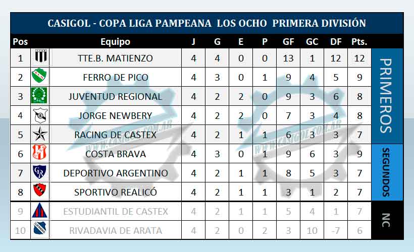 TABLA DE  POSICIONES PRIMERA DIVISIÓN