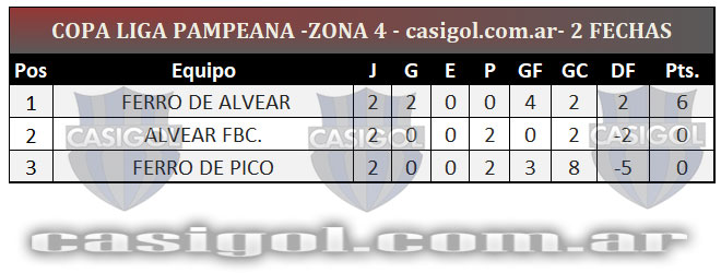 TABLA ACTUALIZADA ZONA 4 COPA LIGA PAMPEANA
