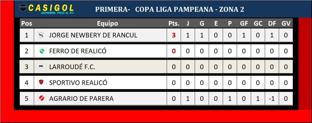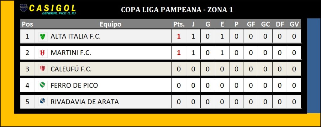 En la tarde comenzó el torneo Copa Liga Pampeana con siete partidos, divididos en sus tres zonas.   Recordamos que participan  16 equipos, divididos en dos zonas de cinco equipos cada una y una de seis.