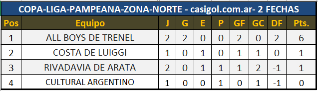 En la tarde de hoy se disputaron dos de los cuatro encuentros de la segunda fecha del torneo copa Liga Pampeana. Por la zona Sur abrieron la jornada At. Catriló y Dep. Argentino, en tanto que en el "Semillero Celeste" Rivadavia hizo lo propio con All Boys de Trenel.