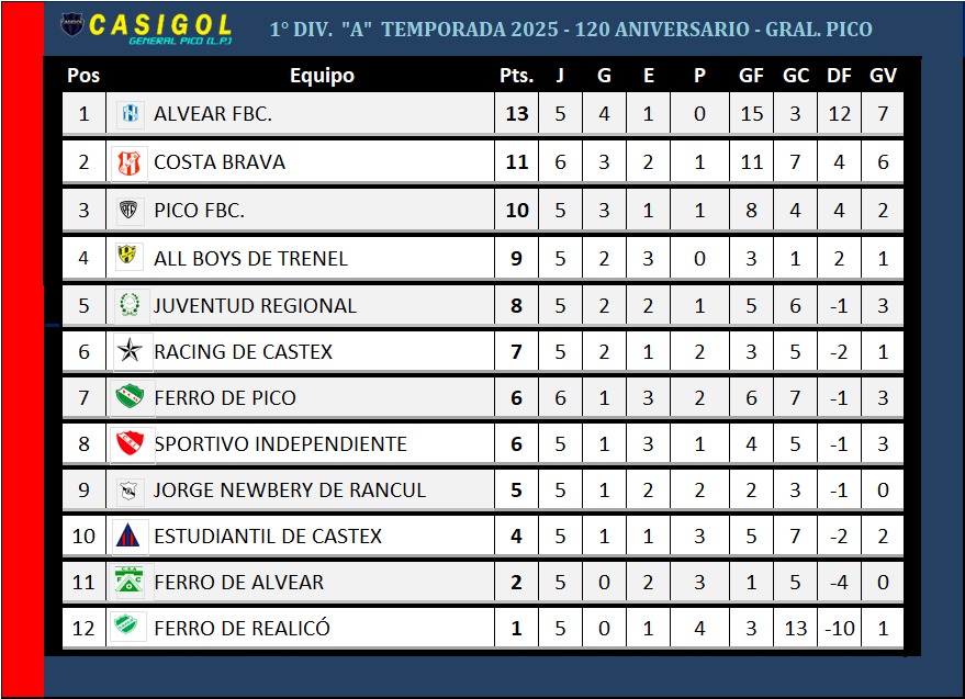 En la noche de hoy se disputó el clásico de nuestra ciudad entre Ferro Carril Oeste y Costa Brava por la sexta fecha del torneo Apertura de fútbol de Liga Pampeana denominado "120 aniversario de General Pico".