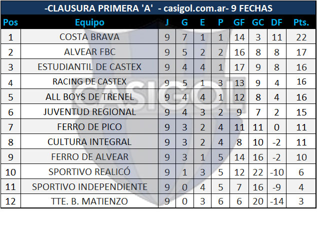 Se disputó la novena fecha del torneo clausura de fútbol de Liga Pampeana. La misma ingresó en la etapa donde se define el otro finalista, los clasificados al provincial, la promoción y el descenso. Ganó Cultura, Alvear, empataron Matienzo y All Boys, Estudiantil Ferro de Alvear y Sportivo Independiente Sportivo Realicó , en el adelantado Juventud Regional derrotó por dos a uno a Ferro de nuestra ciudad.