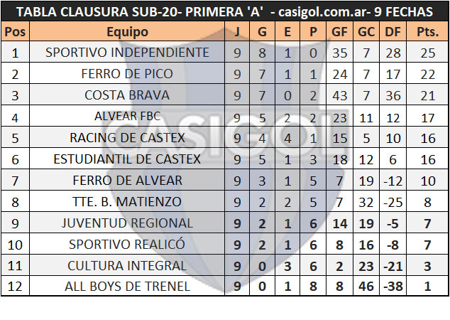 TABLA DE POSICIONES CLAUSURA SUB 20