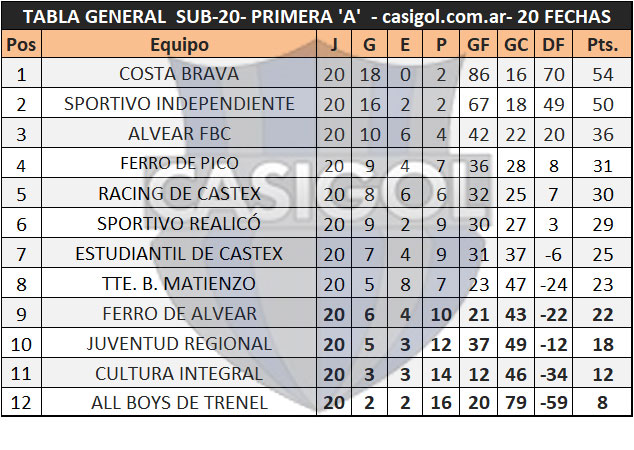 TABLA GENERAL DE POSICIONES SUB20