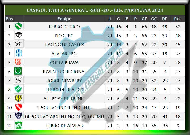 TABLA DE POSICIONES SUB 20. CLAUSURA
