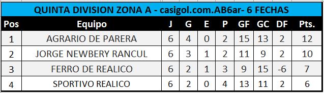 Aquí se da la particularidad que el OCTAVO LUGAR, lo igualan Alvear FBC y Racing Club en todos sus ITEM por lo tanto tendrá que determinarse el octavo lugar por sorteo