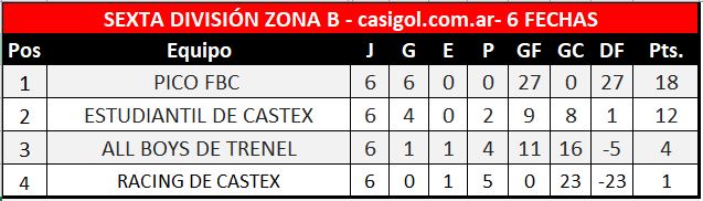 Se disputó la sexta fecha del torneo extra de divisiones inferiores, última de la fase regular,  en sus cuatro zonas y en sus tres categorías. La síntesis de lo sucedido la publicamos a continuación, con los clasificados y como se cruzan en cuartos de final: