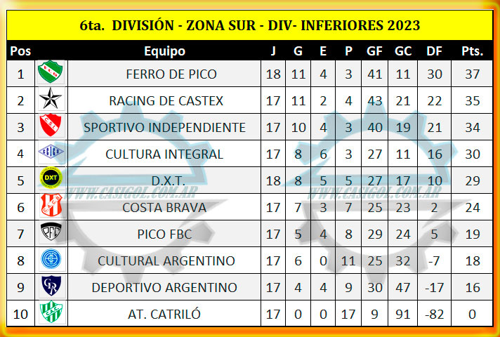 Se disputó el adelantado de la fase regular de la última fecha del torneo de diviiones inferiores en la cuál se enfrentaron por la zona sur Ferro de Pico y DXT en séptima, sexta y quinta división. Los encuentros comenzaron a las 18:30hs. con la categoría de los más peque.
