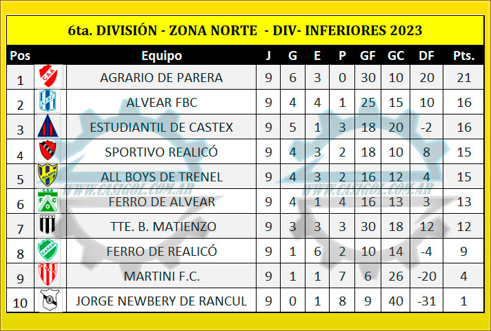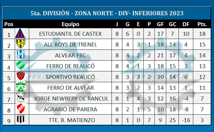 Se completó la novena fecha de divisiones inferiores, con los partidos de séptima, sexta y quinta división en las zonas norte y sur del torneo oficial. Los siguientes fueron lso resultados las tablas y lo que se viene en la novena, última de la primera rueda. La jornada que comenzó el jueves y terminó (con algunos *) en el día de hoy, fue la última de la primera rueda, por lo tanto a partir del sábado venidero comenzarán a jugarse las revanchas.