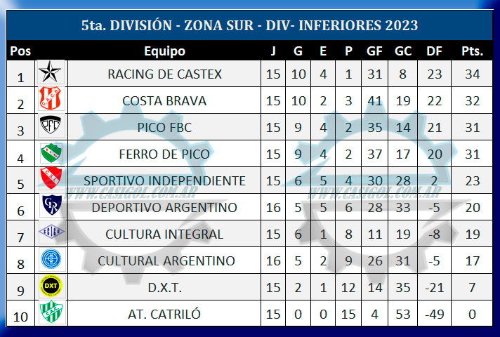 ZONA SUR QUINTA DIVISIÓN