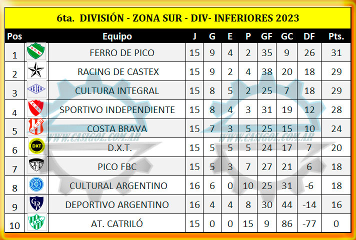 ZONA SUR SEXTA DIVISIÓN