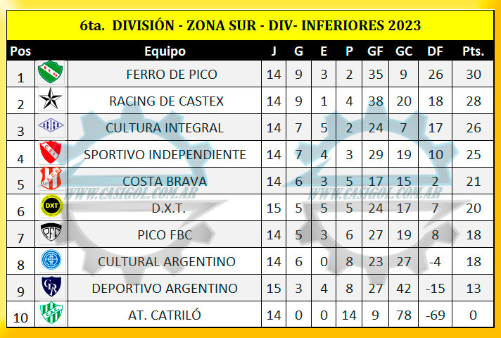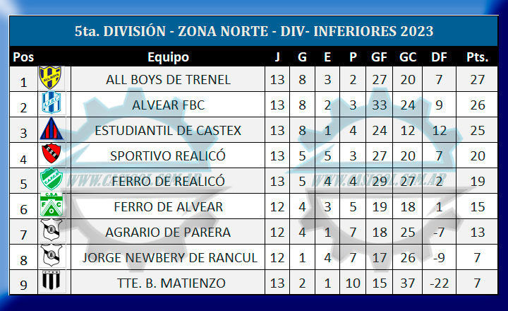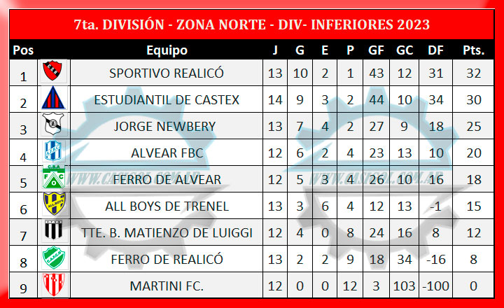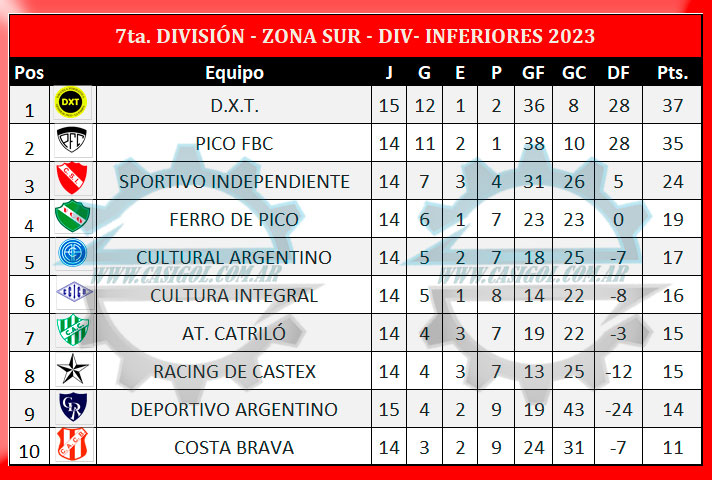 En la fría noche de hoy se disputaron los encuentros adelantados de séptima, sexta y quinta división con dos encuentros por categoría y por zonas. Por la zona Sur se enfrentaron por la sexta de las revanchas en el "Carlos Sierra" del Deportivo Argentino, el local y D.X.T. y en la norte hicieron lo propio en el "Parque Rojo" Sportivo Realicó y Estudiantil de Castex. Estos fueron los resultados, así quedaron las tablas y lo que se viene para estos cuatro equipos.