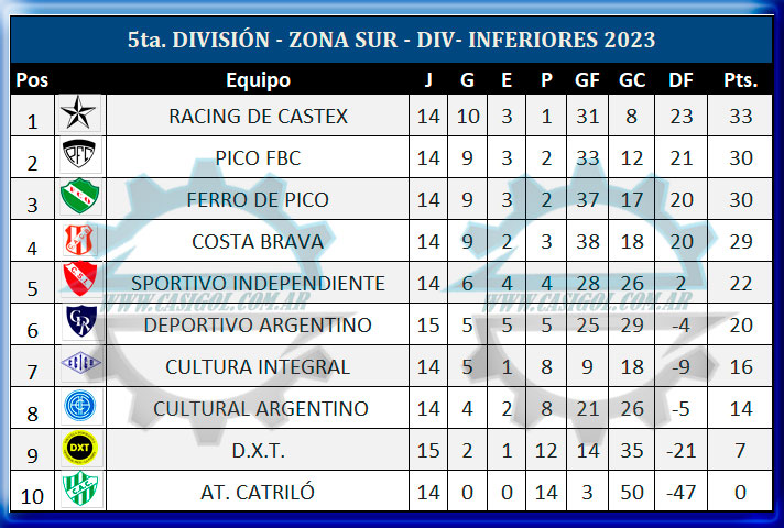 ZONA SUR QUINTA DIVISIÓN