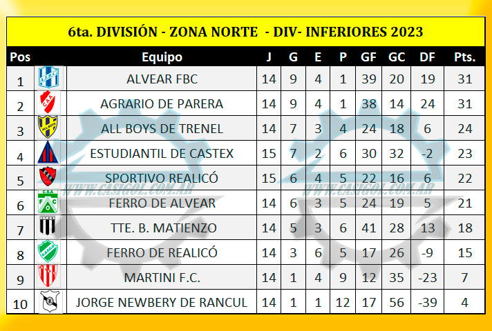 ZONA NORTE SEXTA DIVISIÓN