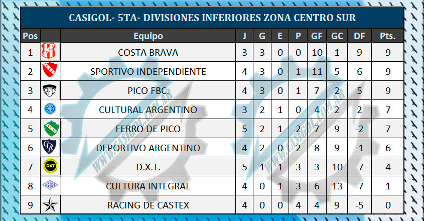 COMPLETAN SÁBADO 25 DE MAYO - QUINTA DIVISIÓN ZONA CENTRO SUR