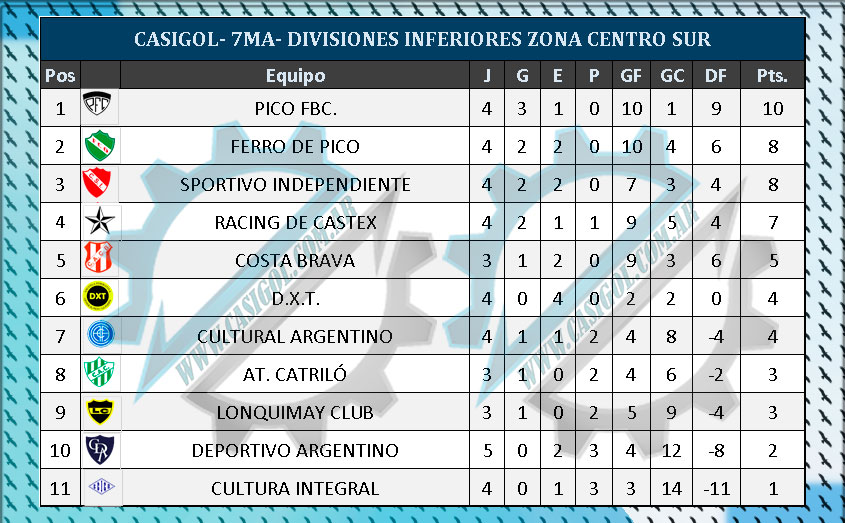 COMPLETAN SÁBADO 25 DE MAYO - SÉPTIMA DIVISIÓN ZONA CENTRO SUR