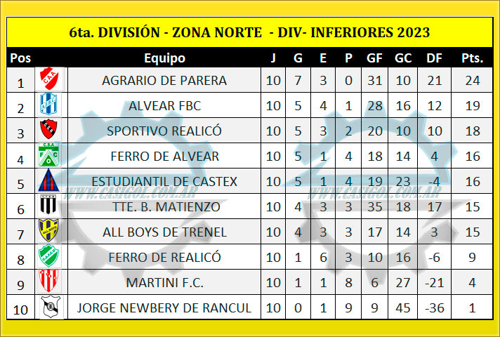 ZONA NORTE SEXTA DIVISIÓN