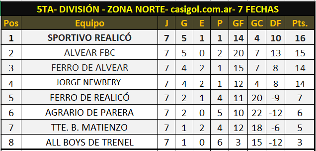 QUINTA DIVISIÓN ZONA NORTE