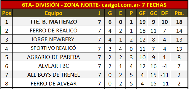 SEXTA DIVISIÓN ZONA NORTE