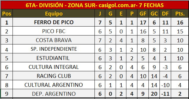 SEXTA DIVISIÓN - ZONA SUR