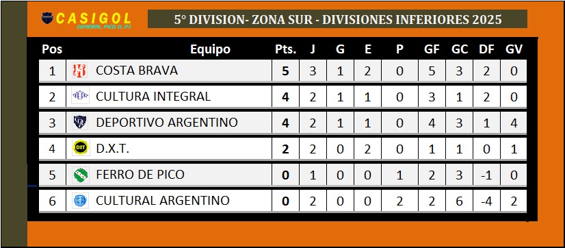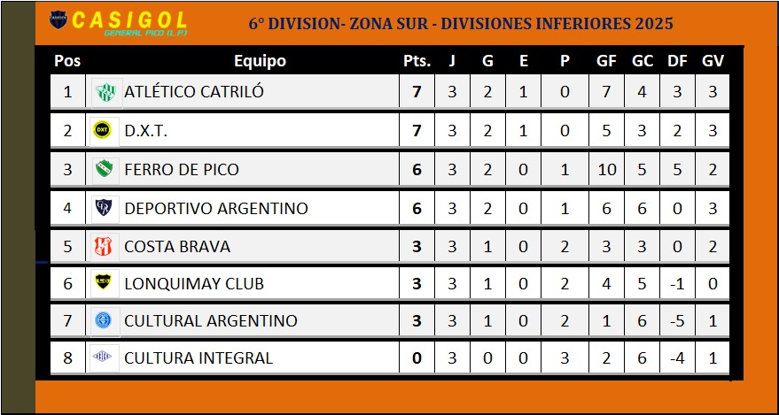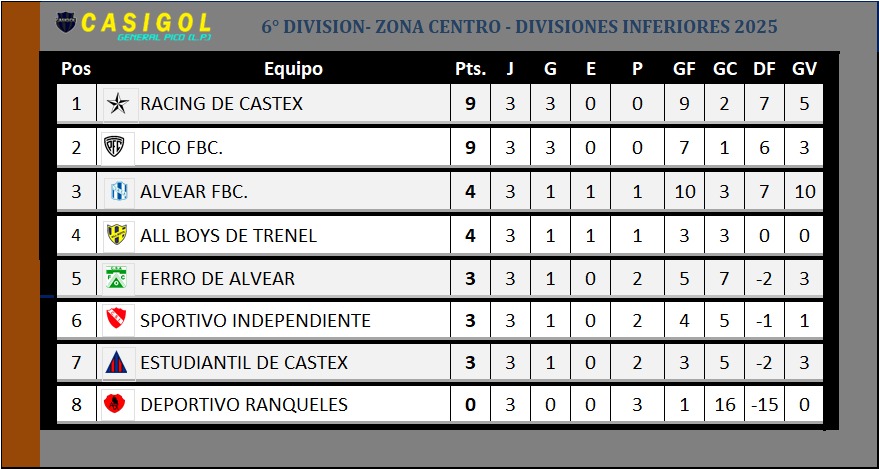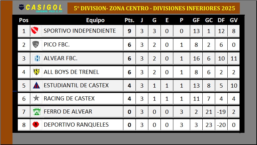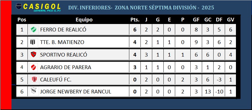 En el día de hoy se disputó la tercera fecha en las divisiones inferiores, en sus tres zonas para las categorías séptima, sexta y quinta división.