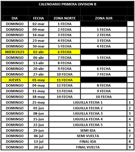 Recordamos que el torneo de primera división "A" comenzará el domingo 23 de febrero, en tanto que la prirmera "B" que como habíamos adelantado tendrá dos zonas, comenzará el domingo dos de marzo para su zona Norte, y el 9 de marzo para su zona sur.