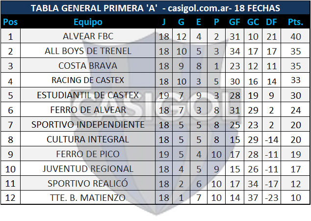 TABLA DE POSICIONES GENERAL  PRIMERA DIVISIÓN
