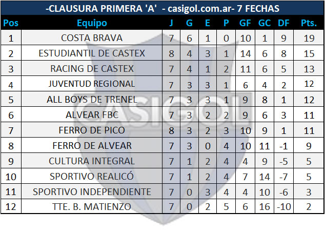 TABLA DE POSICIONES CLAUSURA PRIMERA DIVISIÓN