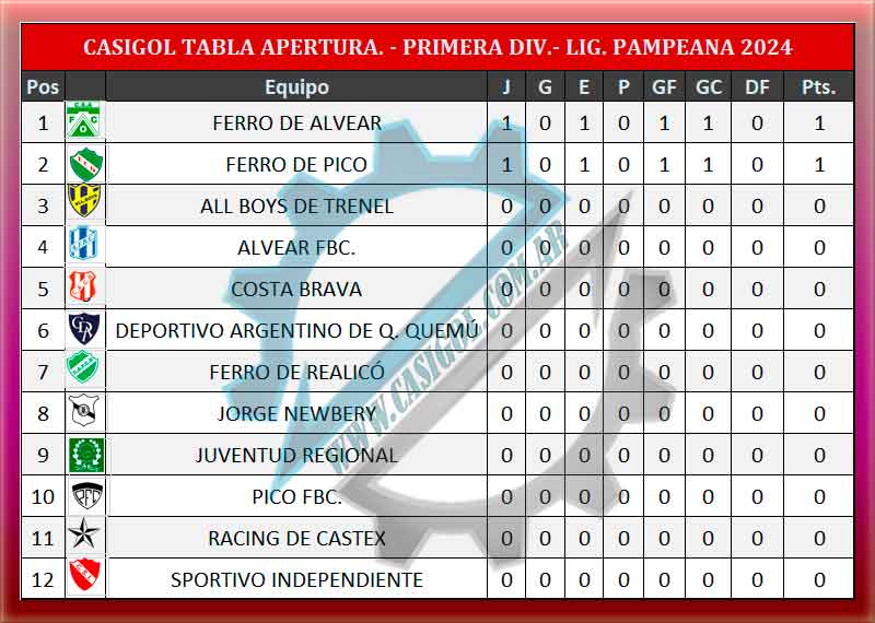 EMPATE EN EL "COLOSO" EN EL ARRANQUE DE LA LIGA PAMPEANA DE FÚTBOL