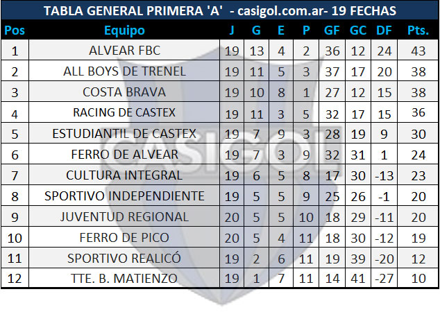 TABLA DE POSICIONES GENERAL PRIMERA DIVISIÓN
