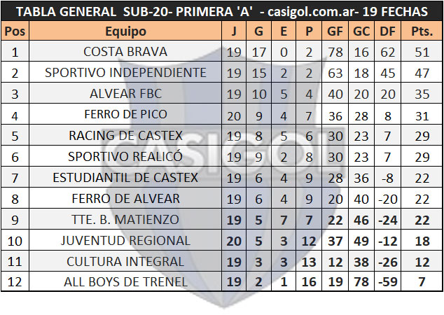 GOLEADORES: Facundo Ayala (JR)- Augusto Bastida (JR) Braian Noriega (F)