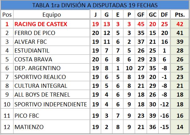TABLA DE POSICIONES GENERAL