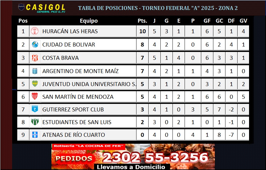 ÁRBITROS SEXTA FECHA ZONA 2 FEDERAL "A"